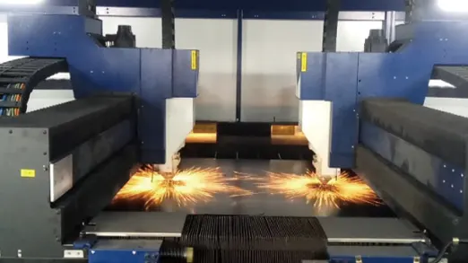 ● Asynchronous dynamic laser cutting with a dual laser cutting head shapes complex part at once. The nesting software calculates appropriate processing route to maximize material utilization.