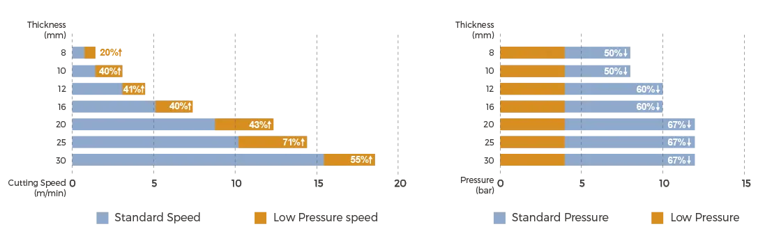 Faster cutting speed,less cutting time of the same batch, up to 67% Gas Saving.