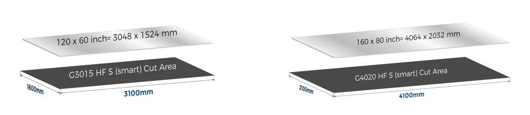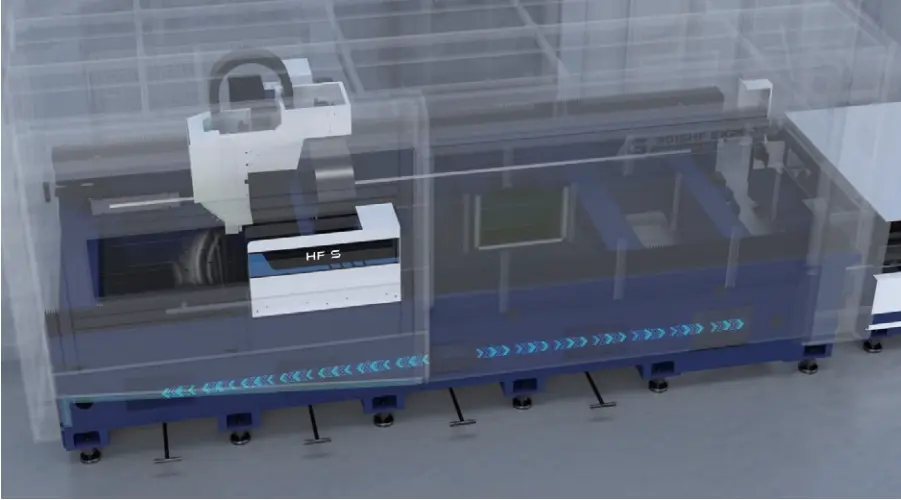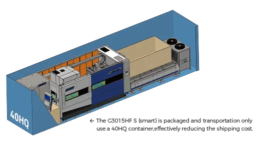 Electrical cabinet ⁄ laser source ⁄ pneumatic system ⁄ lubrication system ⁄ table drive motors all integrated in Main Frame, are flexible in placement, easy to install and maintain, effectively improves the utilization rate of the production space, and reduce machine footprint, saving shipping costs.