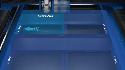 The multi-zone suction comes with good dust removal effect by area, which intelligently distributes the air volume of each exhaust outlet to each partition structure and effectively improve the suction and dust removal capacity of the processing area. It also reliable to reduce the risk of contamination of the cutting head that keep your working area clean.