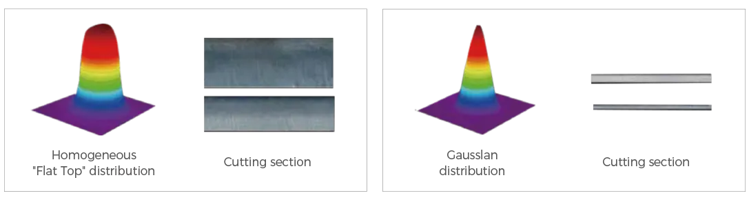 ● Gaussian spot: Air/nitrogen cutting speed is faster, heat is concentrated;